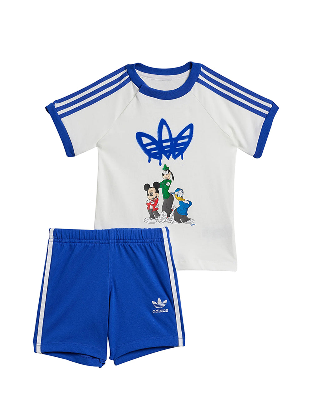 Il coordinato Adidas per bambino è realizzato in colori bianco e blu, con dettagli multicolori che lo rendono vibrante e allegro. Composto da una maglietta a maniche corte e pantaloncini abbinati, offre comfort e libertà di movimento, perfetto per l'attività fisica e il tempo libero. Un capo pratico e versatile per i piccoli amanti dello sport e dell'avventura.