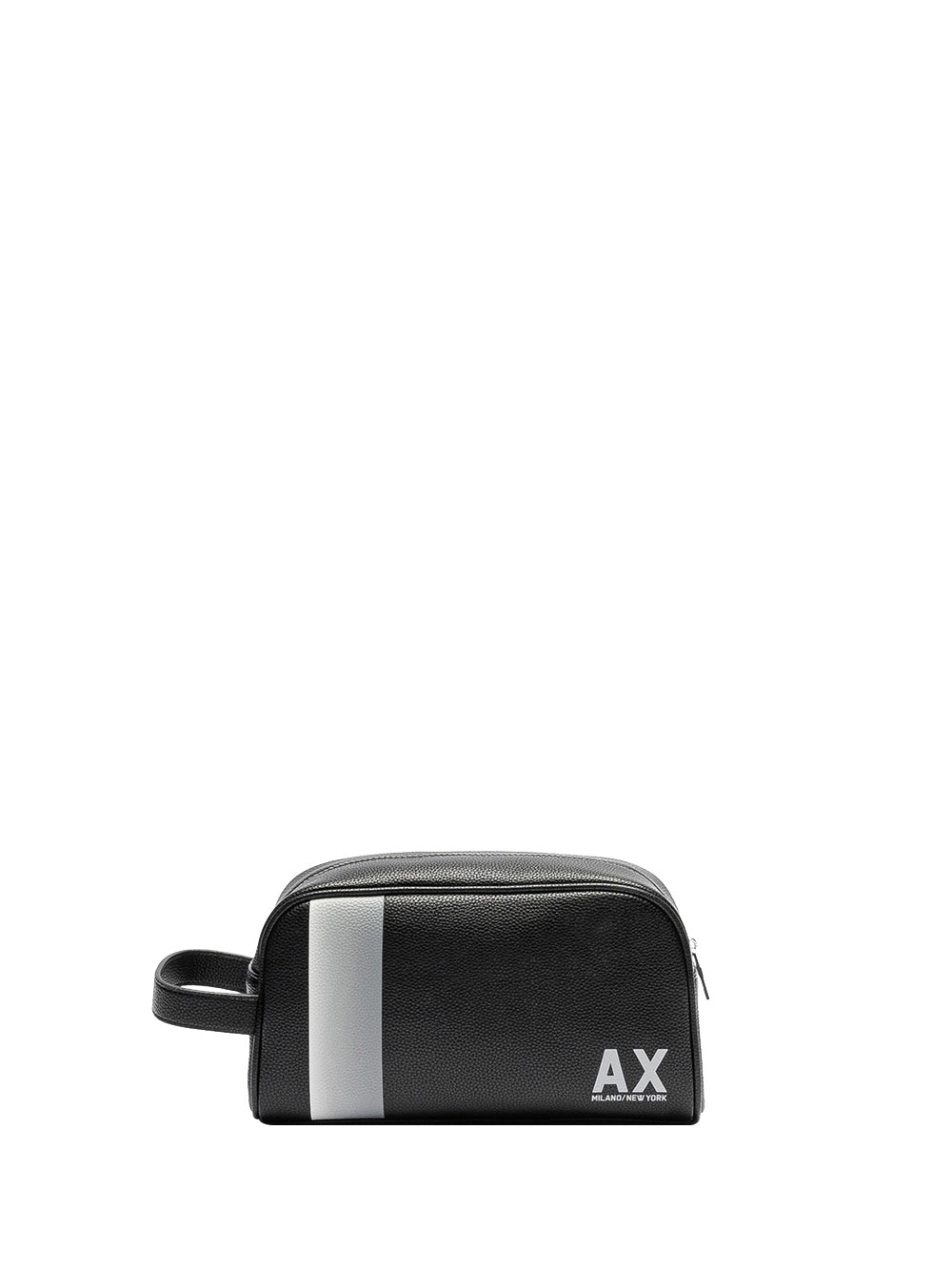 Il Beauty case Armani Exchange per uomo è caratterizzato da un design elegante e sofisticato. Realizzato in resistente materiale nero, è ideale per conservare e trasportare comodamente cosmetici e prodotti per la cura personale. Dotato di ampio spazio interno e chiusura sicura con zip, è perfetto per viaggi o per l'uso quotidiano. Adatto a uomini che apprezzano la qualità e l'eleganza nei dettagli.
