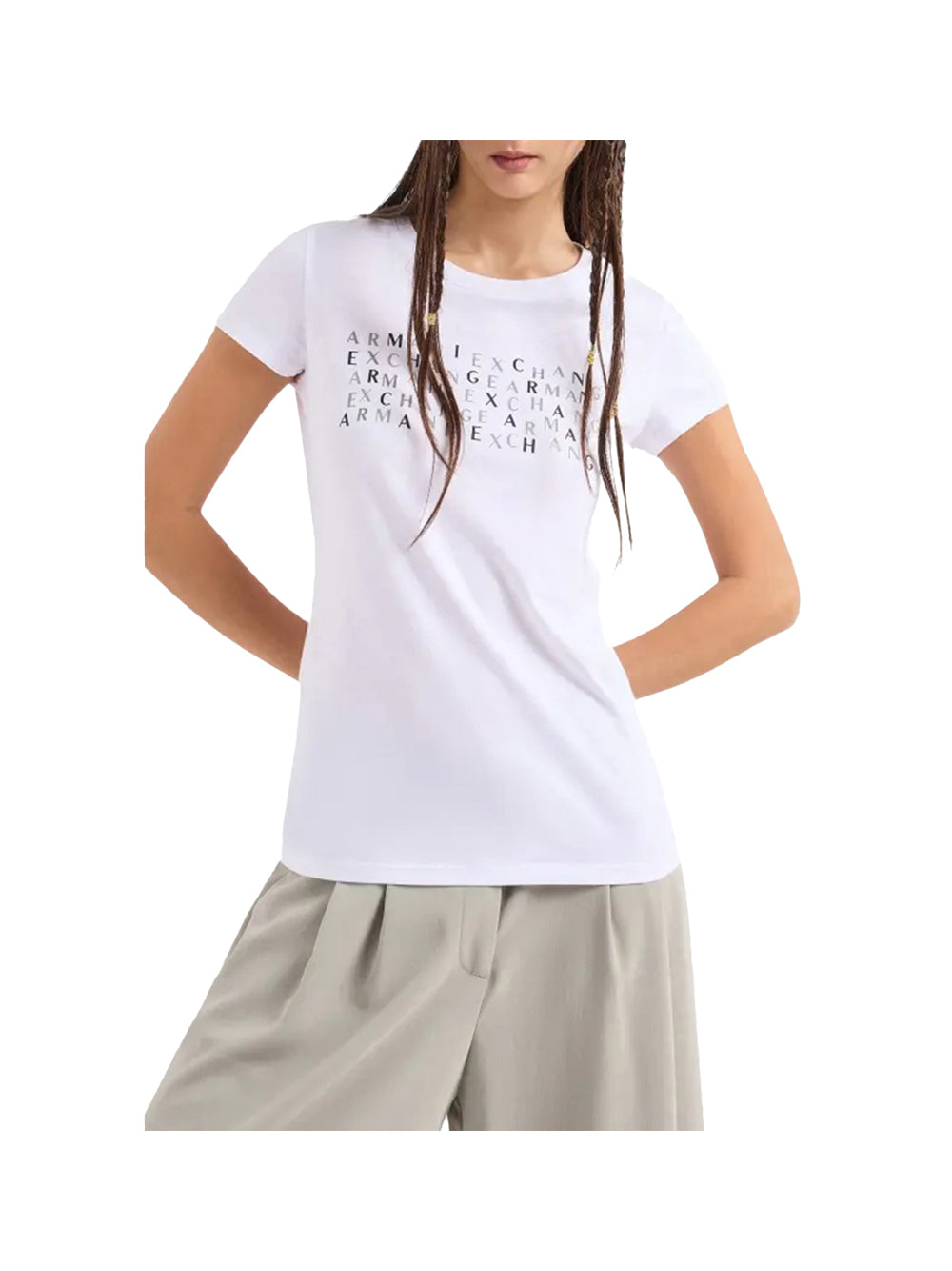 La T-shirt bianca da donna di Armani Exchange è un capo essenziale e versatile per il tuo guardaroba. Realizzata in morbido cotone, presenta un design pulito e minimalista con il logo del marchio stampato sul petto. Perfetta da indossare in tante occasioni diverse, questa T-shirt garantisce comfort e stile senza tempo.