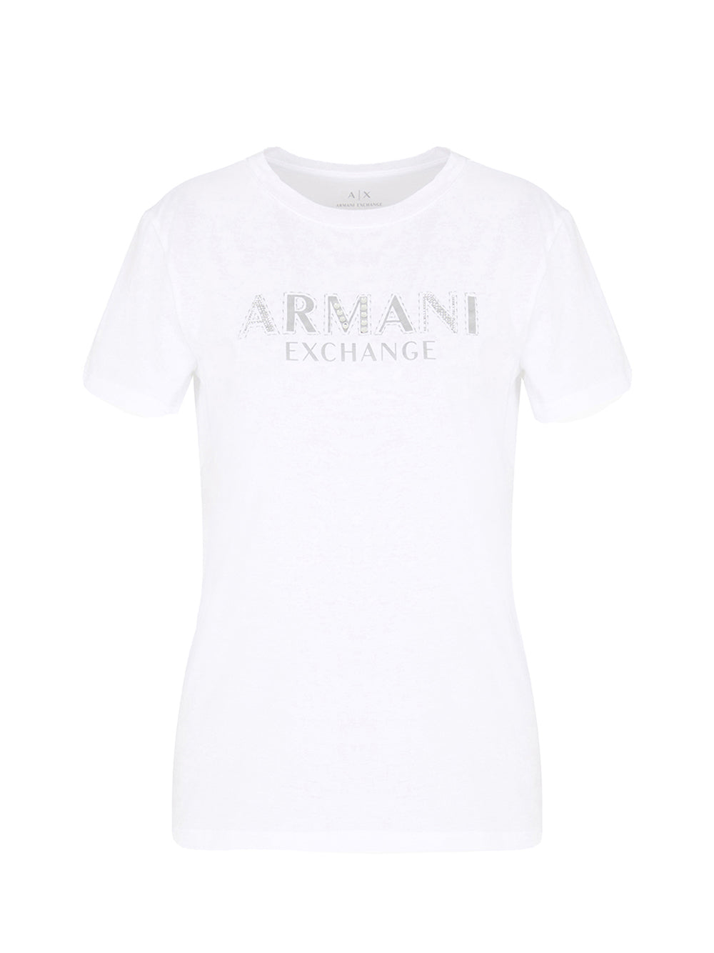 La T-Shirt Armani Exchange Donna Optic White è un capo versatile e confortevole, realizzato al 100% in cotone. Il design regular fit e lo scollo tondo la rendono adatta a ogni occasione. La stampa logo effetto metal e le maniche corte aggiungono un tocco di stile e originalità al tuo outfit. Un must-have per chi ama un look casual ma raffinato.