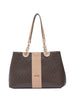 La borsa a mano tote media di Liu Jo è perfetta per ogni occasione. Realizzata in morbida pelle marrone con logo monogram stampato e effetto macro bottalato. Dotata di comoda fodera interna, due scomparti e una tasca centrale chiusa con zip. I manici sono impreziositi da un accessorio metallico, mentre la tracolla removibile offre la possibilità di indossarla anche a tracolla. Completa di tasca sul retro per tenere a portata di mano gli oggetti essenziali. Un must-have per un look elegante e raffinato.