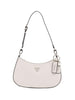 La borsa a spalla Guess Noelle II Top Zip - Avorio è elegante e pratica, perfetta per ogni occasione. Dotata di una tasca con zip sul retro e chiusura principale a zip. Le maniglie di trasporto regolabili e il dettaglio in metallo finitura oro lucido conferiscono un tocco di classe. L'interno è foderato in poliestere con logo Guess, con scomparti per carte di credito e tasca con zip. Realizzata in pelle sintetica di alta qualità, le dimensioni sono ca. 29 x 15 x 6 cm.