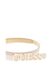 La cintura Guess Lefia è un accessorio di alta qualità realizzato in simil pelle nera, con metalleria color oro pallido che conferisce un tocco di eleganza. La chiusura con fibbia a incastro con logo aggiunge un tocco distintivo. Posizionamento in vita per enfatizzare la silhouette. Realizzata al 100% in poliestere, la cintura non è regolabile ma si adatta perfettamente alla vita. Perfetta per un look sofisticato e alla moda.