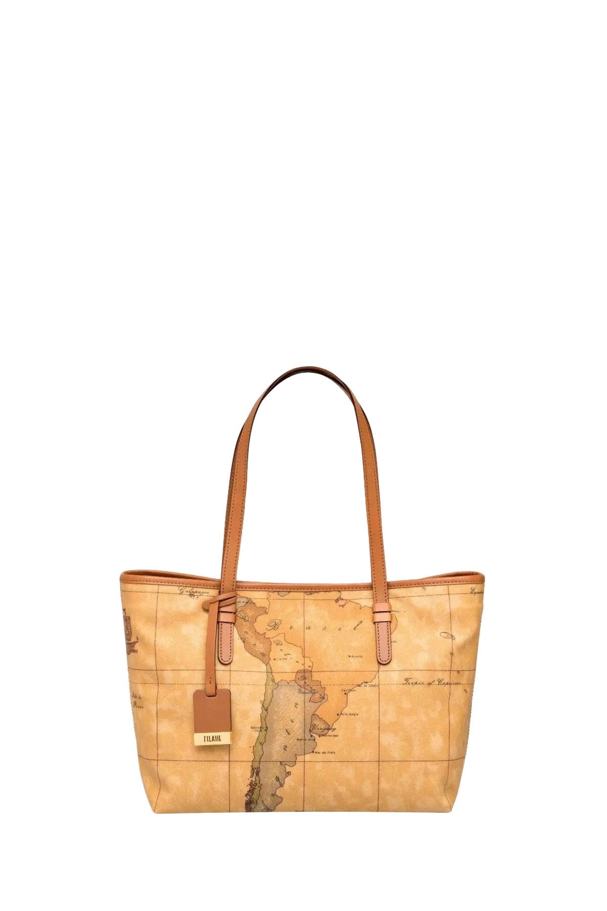 Borsa Shopper Donna realizzato in tessuto stampato con cartina geografica Geo Classic, chiusura con bottone a calamita. Borsa pratica e funzionale che ti accompagnerà al lavoro e nel tempo libero.