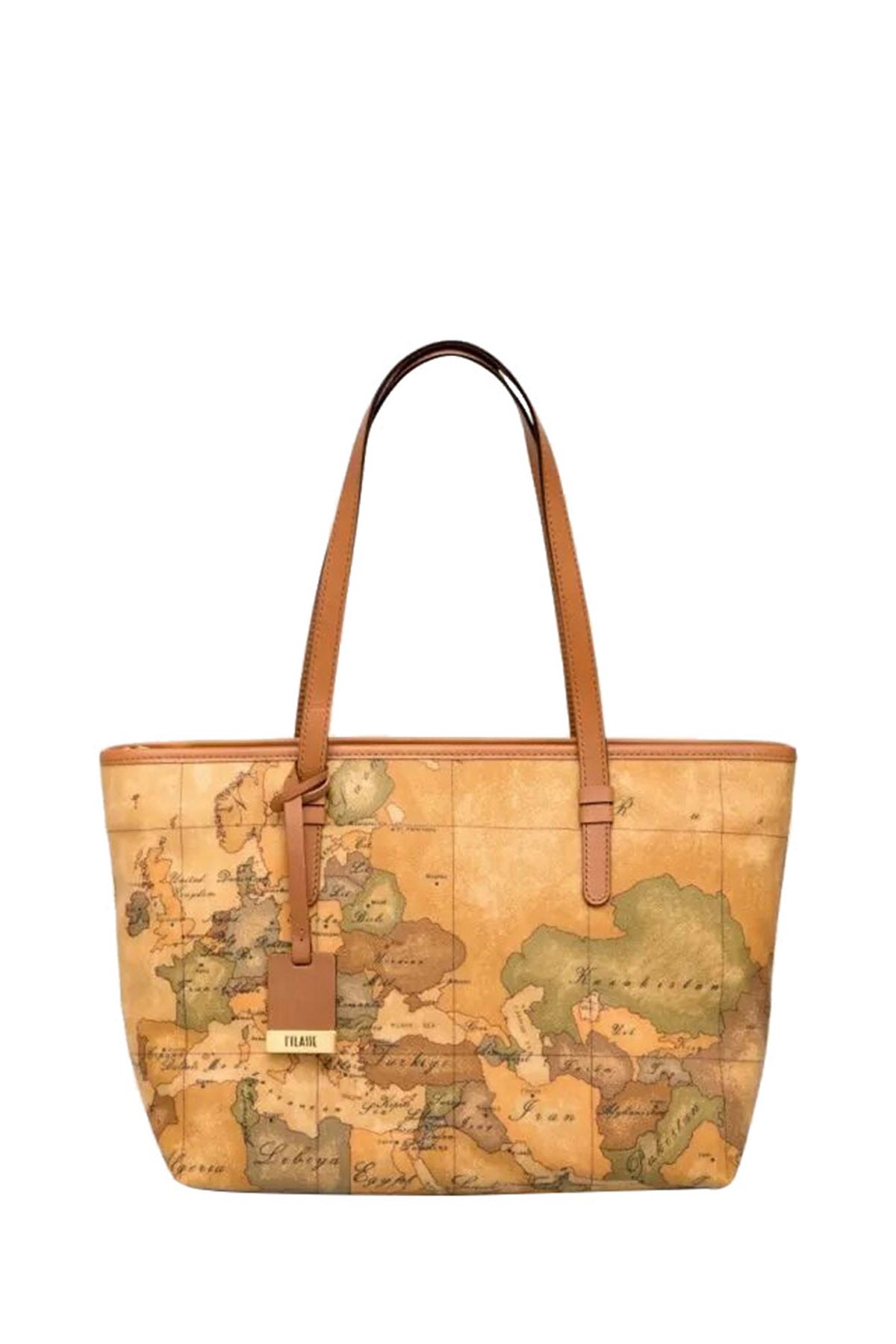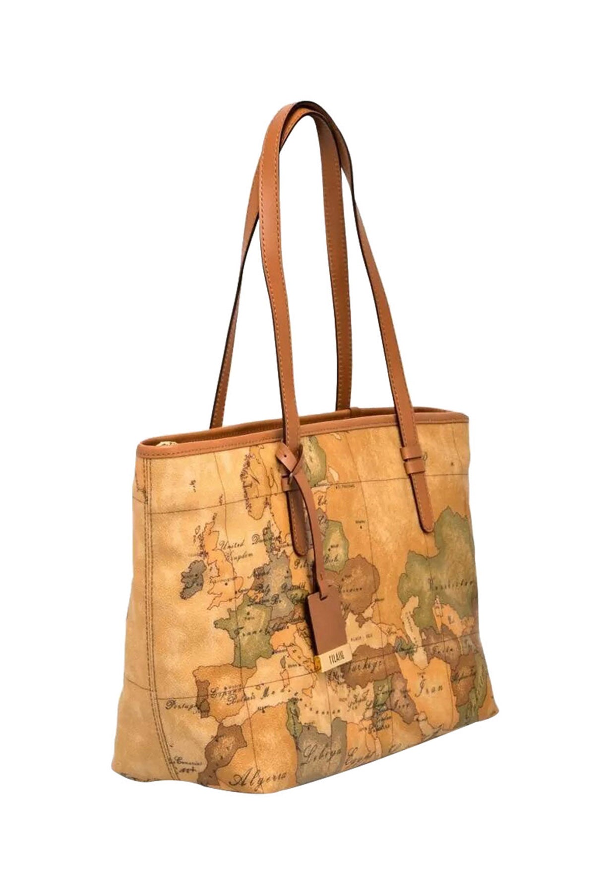- Borsa shopping orizzontale in tessuto stampato con cartina geografica Geo Classic
