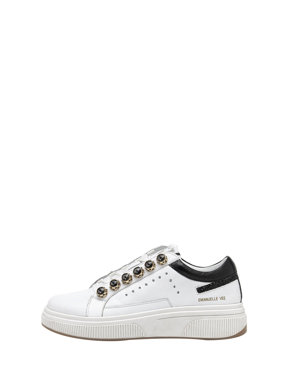 Le sneaker Emanuelle Vee sono caratterizzate da un design moderno e versatile, ideale per completare qualsiasi outfit casual. Realizzate in bianco con tocchi di nero, le scarpe offrono comfort e stile grazie alla loro costruzione di alta qualità e al dettaglio minimalista. Perfette per un look disinvolto e alla moda.