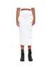 Gonna lunga bianca in maglia a coste inglesi con bottoni dorati e cintura elastica in vita. Realizzata con filati in misto viscosa, appartenente alla collezione "Liu Jo Better". Composizione principale: 62% viscosa, 38% poliestere. Un capo elegante e versatile per un look sofisticato e alla moda.