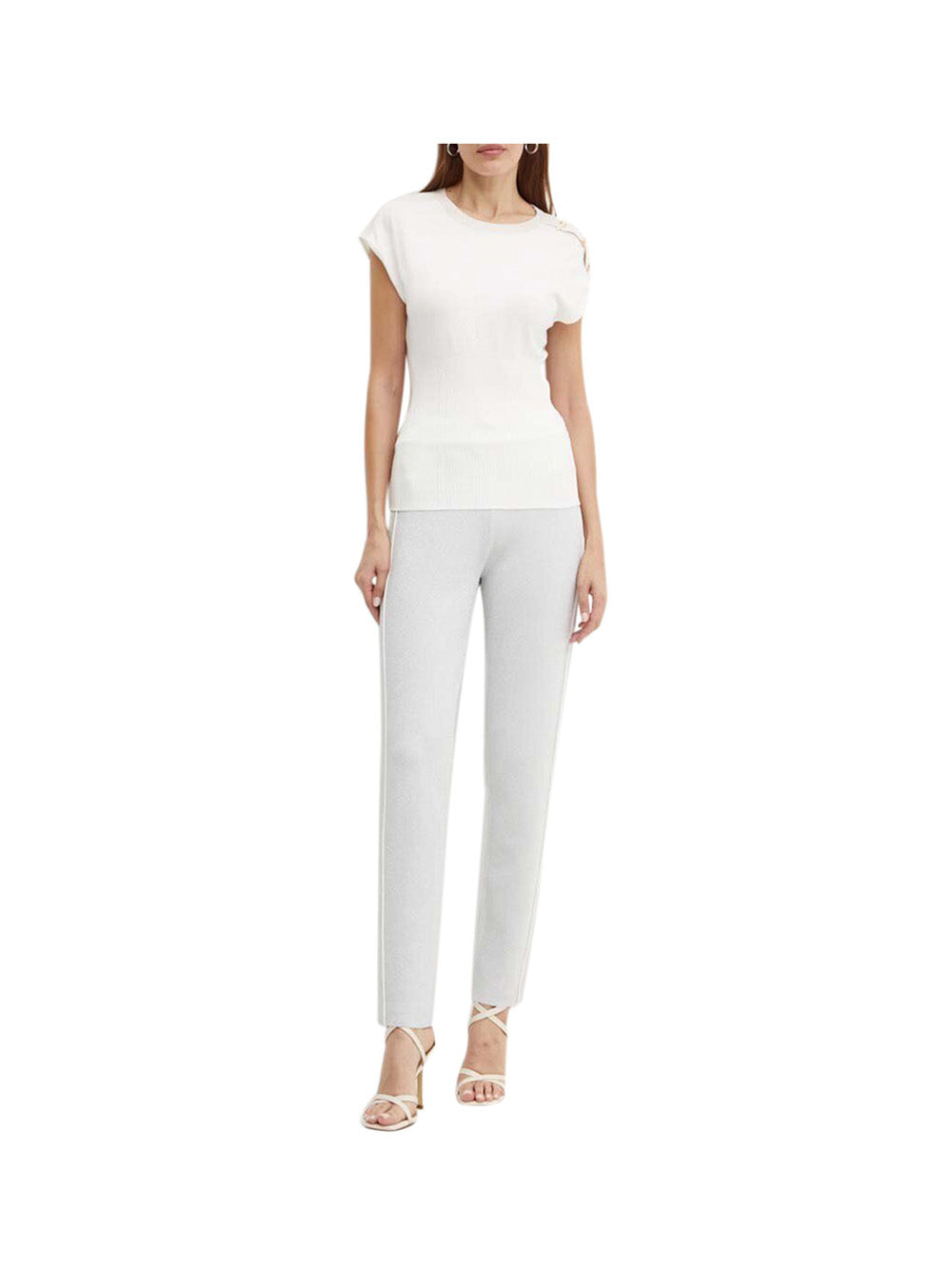 La maglietta bianca Liu Jo per donna è un capo essenziale e versatile per il tuo guardaroba. Realizzata in morbido cotone, presenta un design classico e un taglio femminile che si adatta perfettamente a tutte le occasioni. L'ampia scollatura rotonda e le maniche corte la rendono comoda e pratica da indossare. Perfetta da abbinare a jeans, pantaloni o gonne per un look casual e chic.