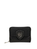 Il portafoglio da donna Blauer Palm03 è elegante e pratico, realizzato in tessuto di poliestere satinato nero. Presenta un logo scudetto in microstrass e una chiusura zip che si apre su uno scomparto per banconote, tre tasche per carte e un portamonete con patta. Le dimensioni compatte (12x2x9 cm) lo rendono perfetto da portare sempre con te. Semplice, sofisticato e con un tocco di classe.