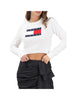 Il pullover Tommy Hilfiger slim fit con paillettes e bandiera bianco è un capo di abbigliamento elegante e sofisticato, perfetto per festeggiare con stile. Realizzato in misto cotone stretch, la maglia è decorata con scintillanti paillettes e l'iconica bandiera Tommy sul davanti. La scollatura rotonda e i dettagli a coste su collo, polsini e fondo conferiscono un tocco di classe. La vestibilità slim fit garantisce un look moderno e alla moda. Il branding Tommy Jeans aggiunge un tocco di autenticità al capo.