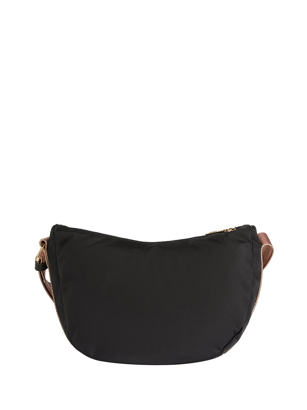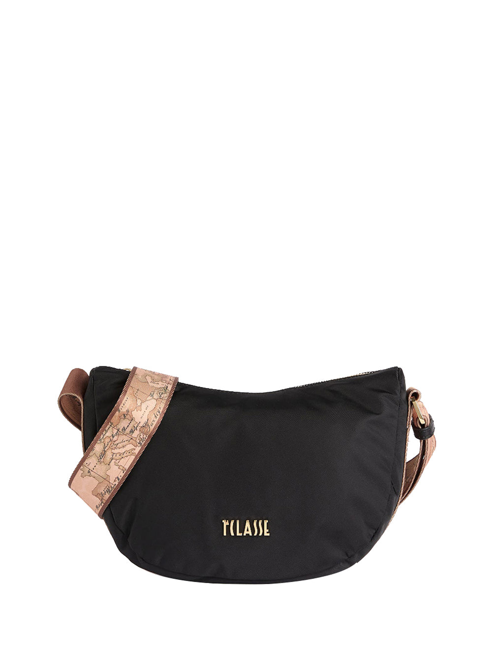 La tracollina a mezzaluna piccola Stormy Nylon interpreta il nylon riciclato ecosostenibile nelle tonalità intense del cielo invernale scozzese, illuminate dal maxi logo 1ᴬ Classe in oro chiaro. Il logo del brand si fa notare sulla tracolla regolabile in nastro, con lato opposto in stampa Geo Classic, per uno stile urbano distintivo. Morbida e funzionale, con più tasche interne, chiusura con zip e metalleria personalizzata, è perfetta per un outfit sofisticato e attento all'ambiente. Dimensioni: 27x18x9 cm.