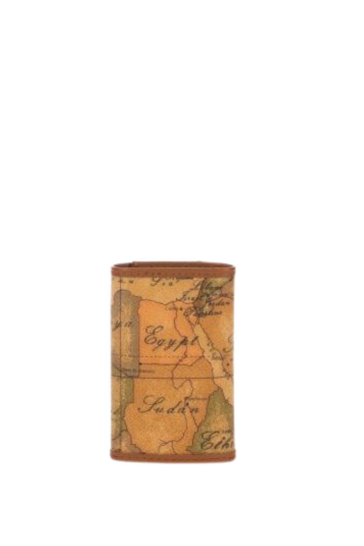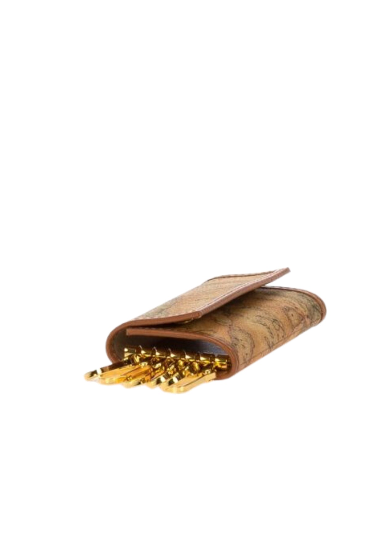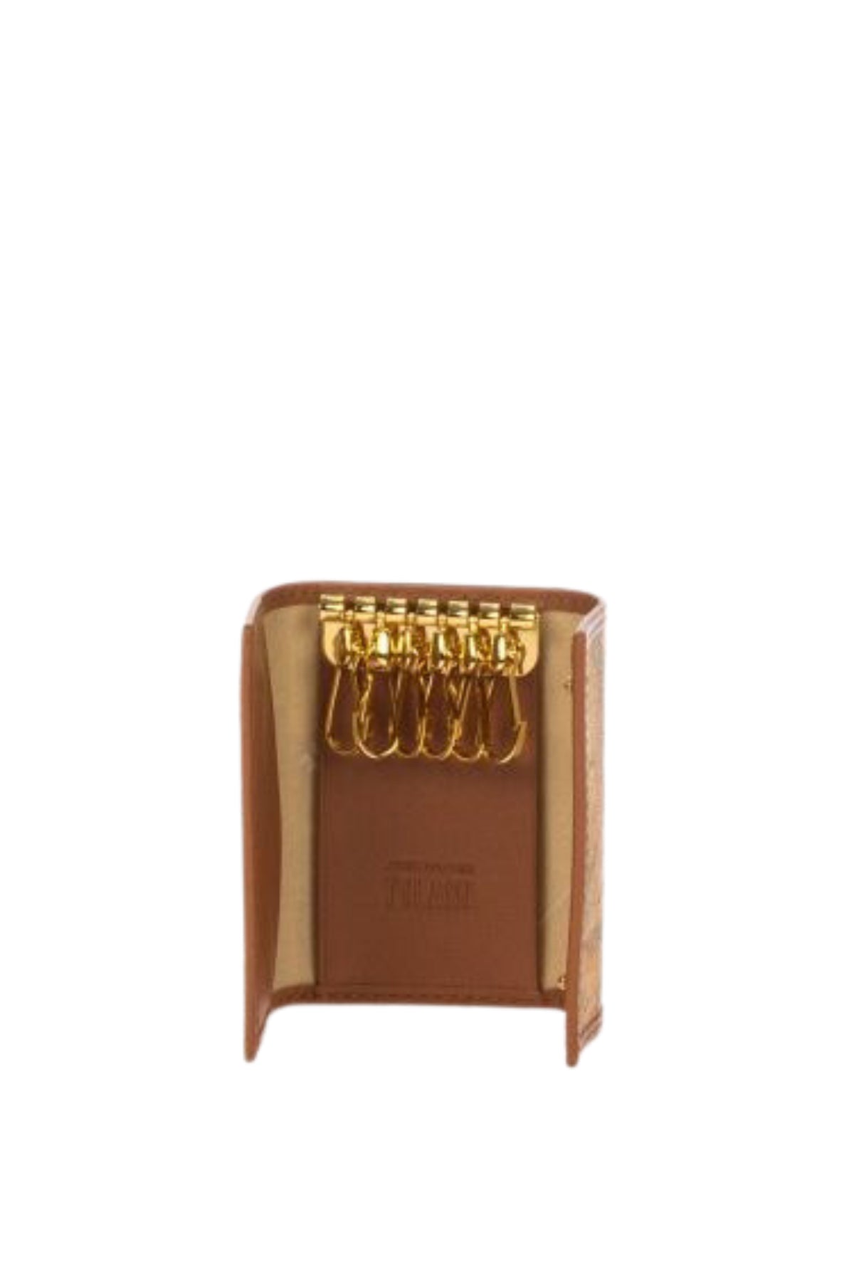 Portachiavi realizzato in tessuto stampato geo classic, con dettagli in pelle di vitello e una metalleria con logo inciso tono su tono.
